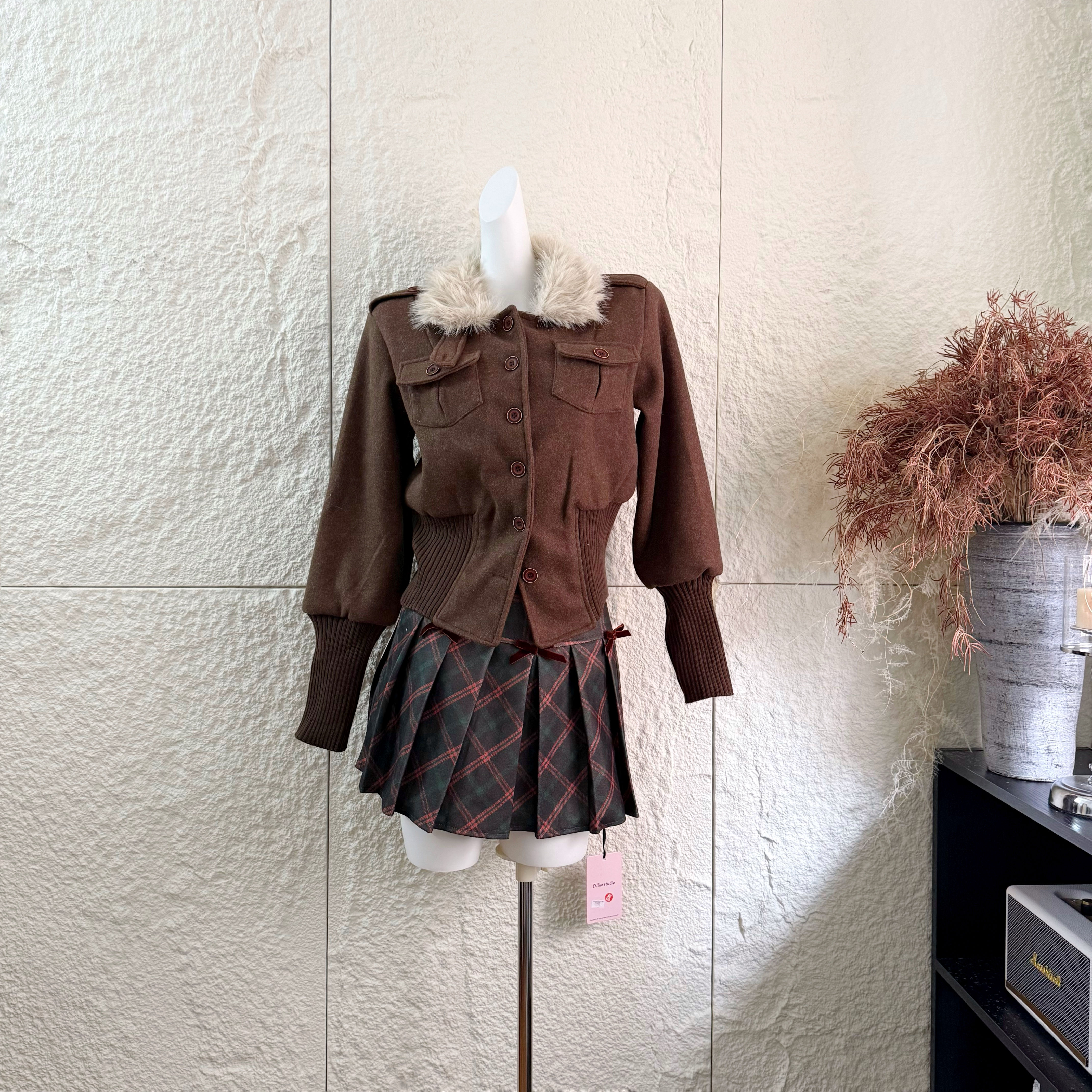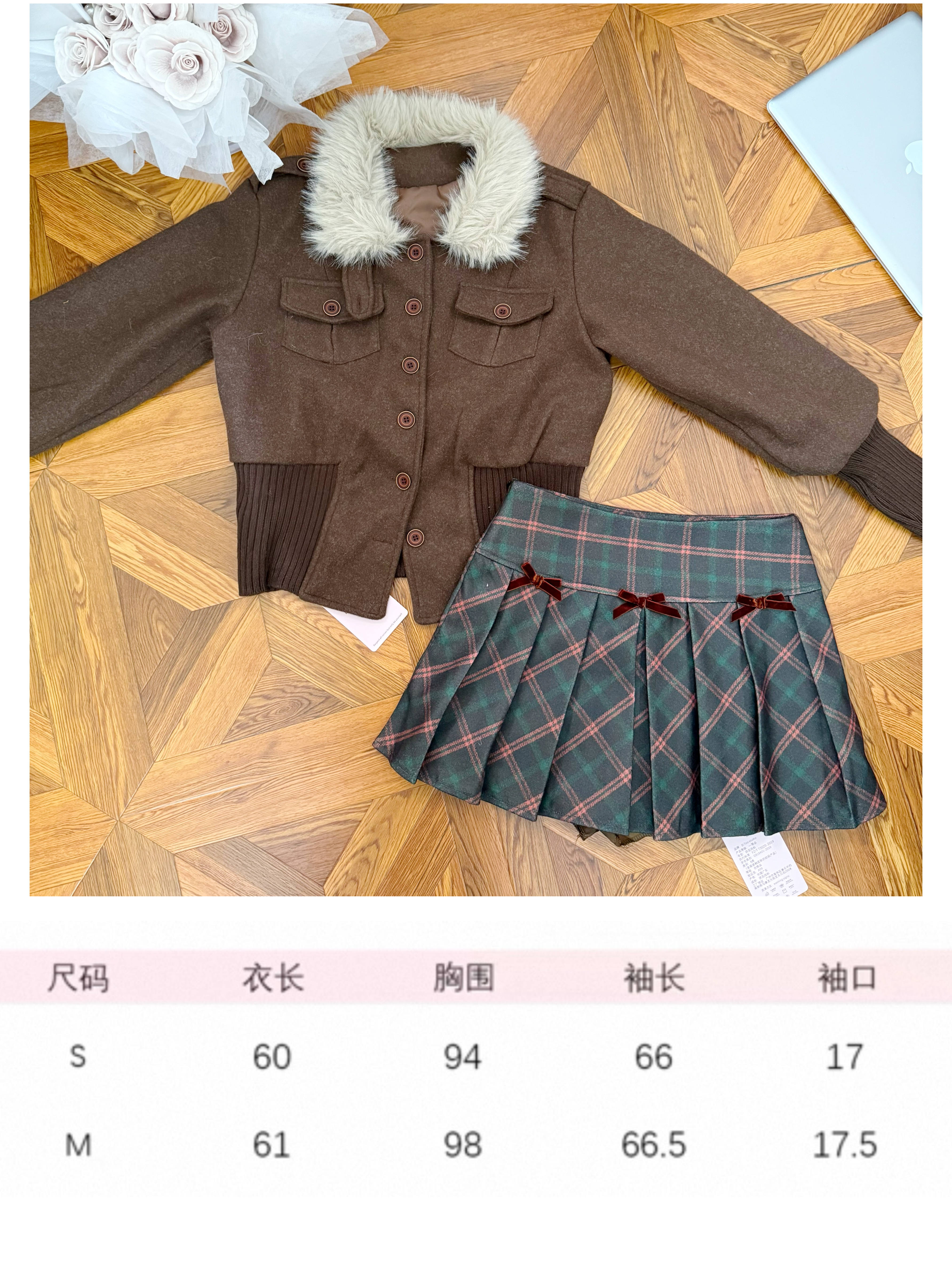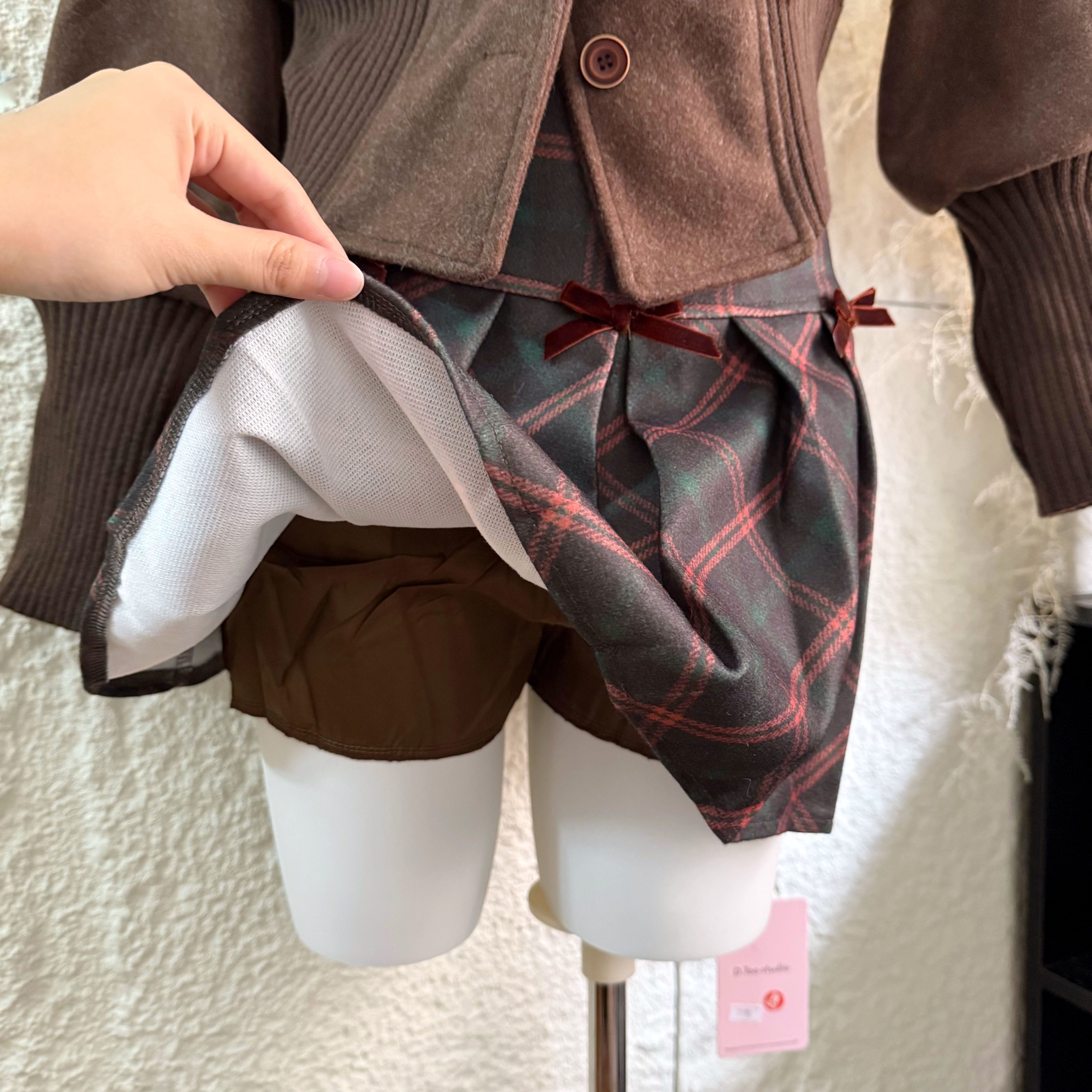 | 색상 | 녹색 체크 무늬 스커트|다크 브라운 재킷 정사이즈 에디션|코튼 버전이있는 카레 코트 |