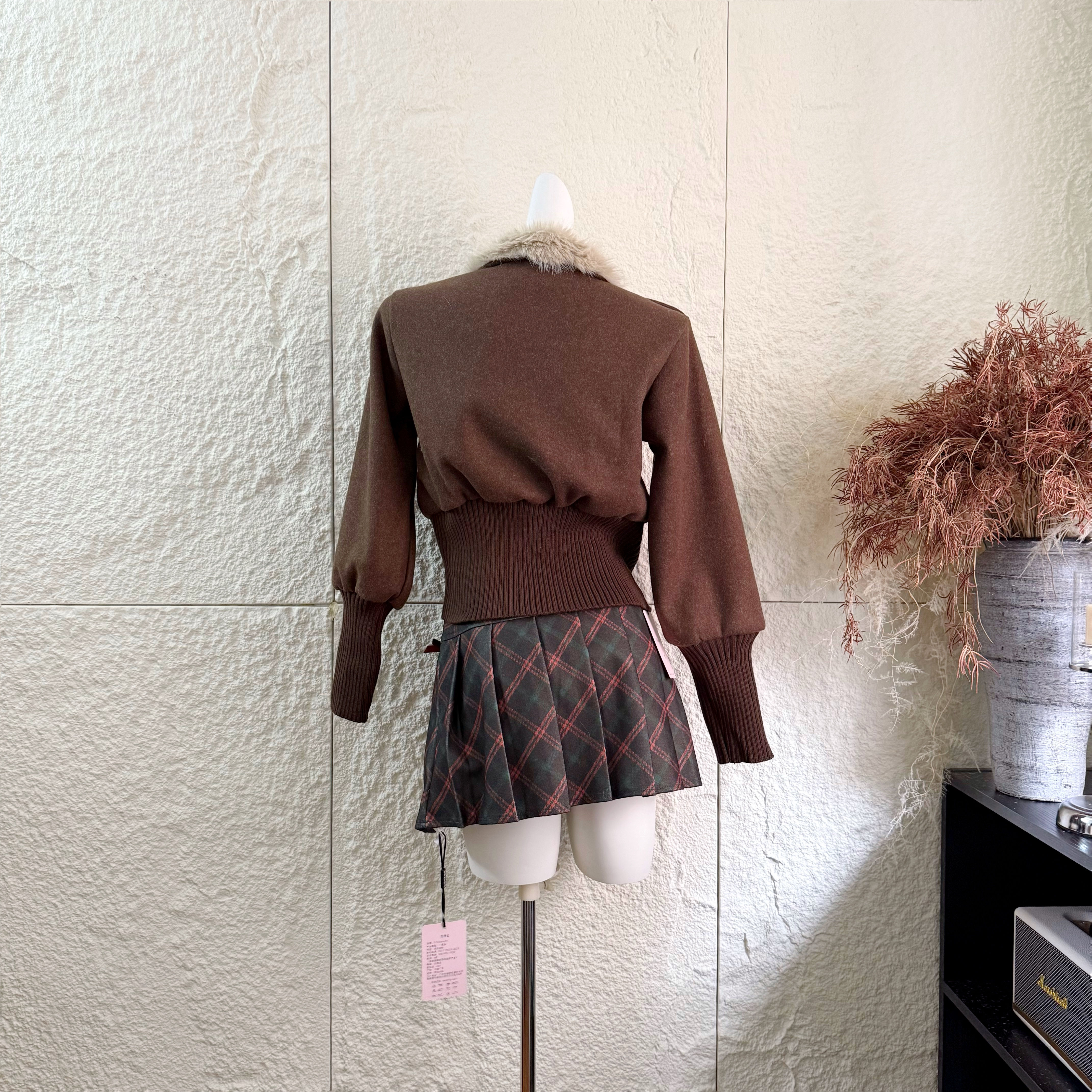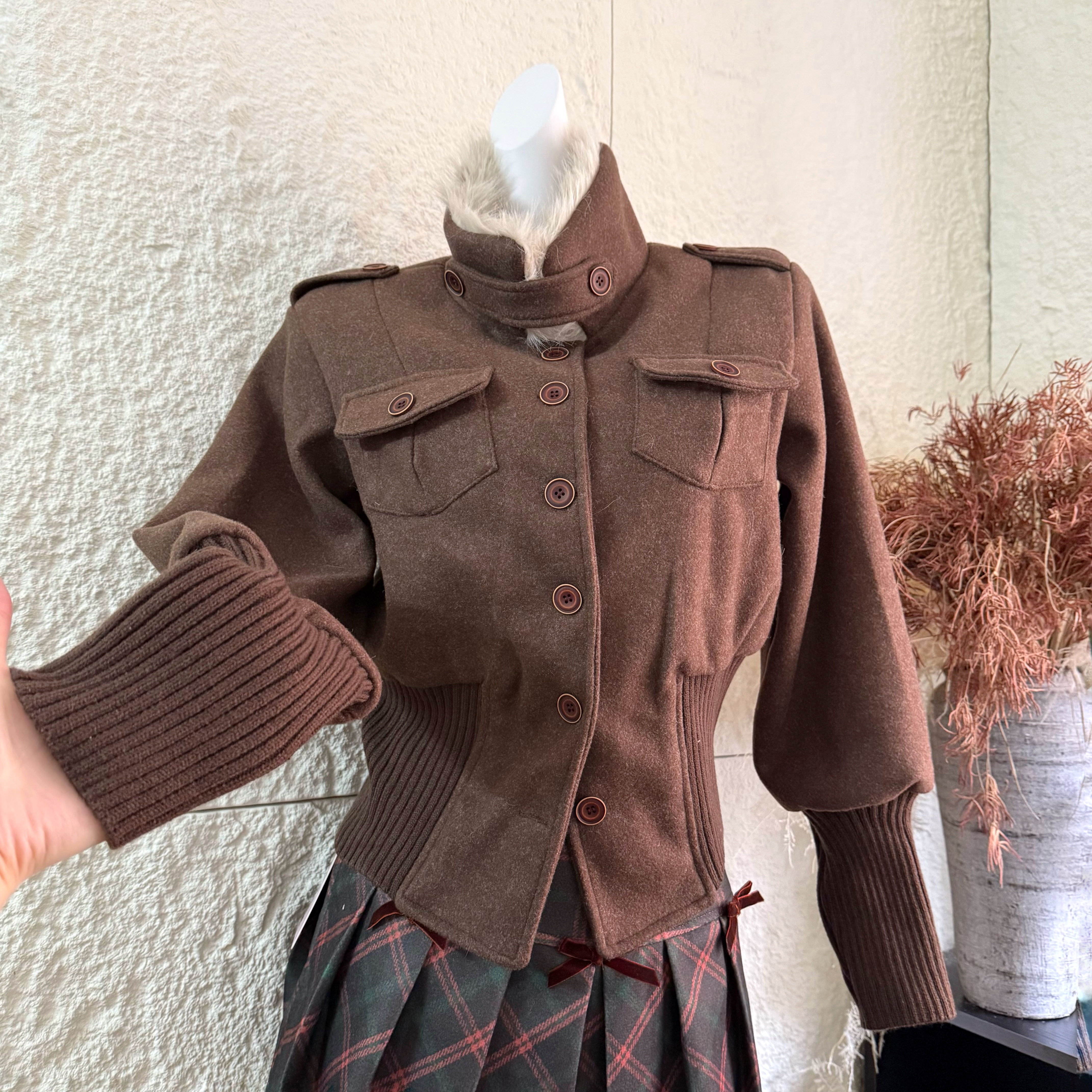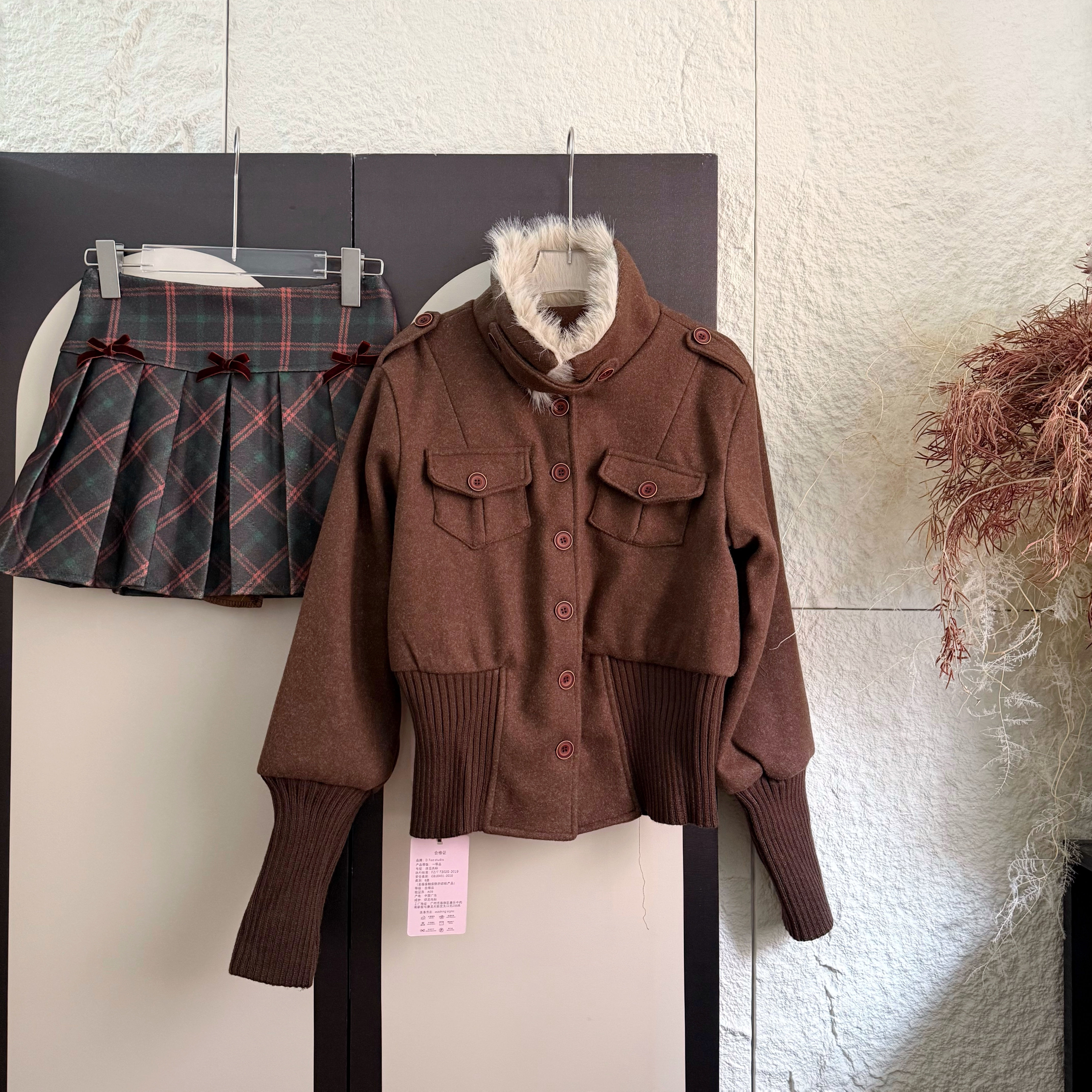 | 색상 | 녹색 체크 무늬 스커트|다크 브라운 재킷 정사이즈 에디션|코튼 버전이있는 카레 코트 |