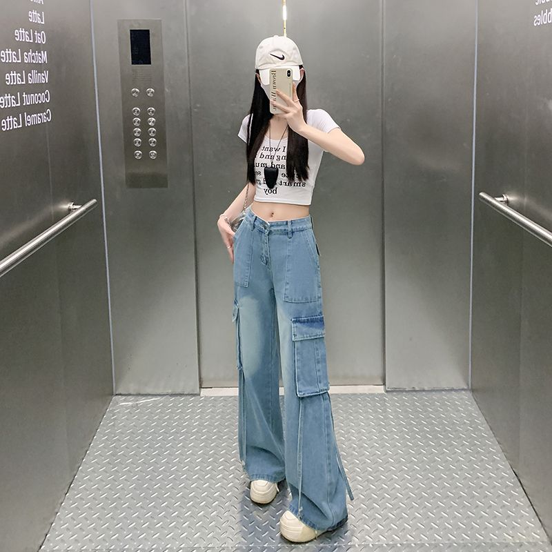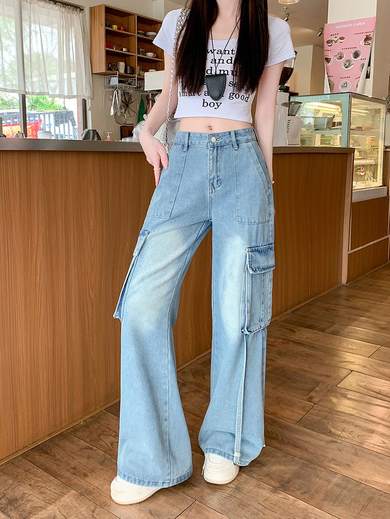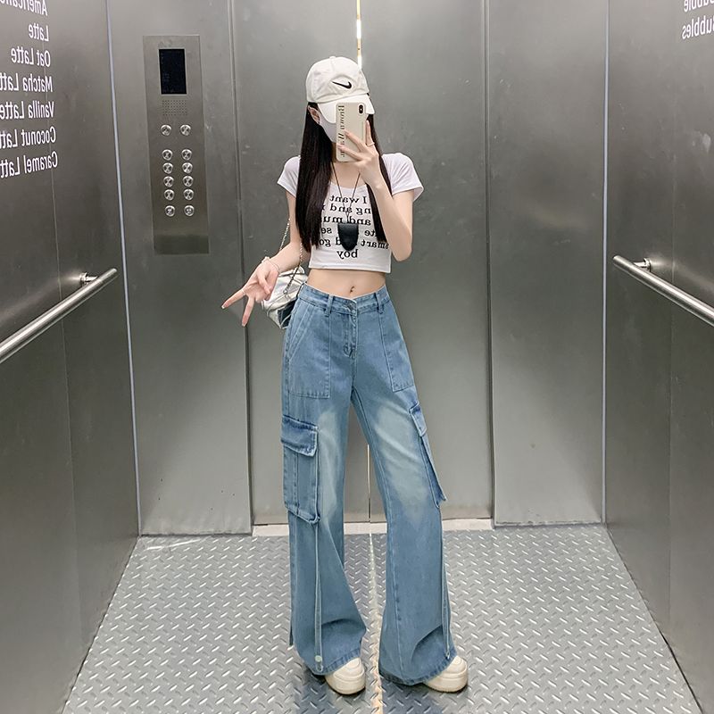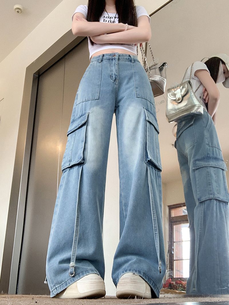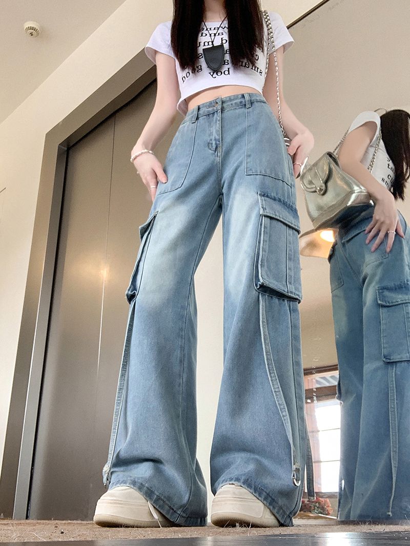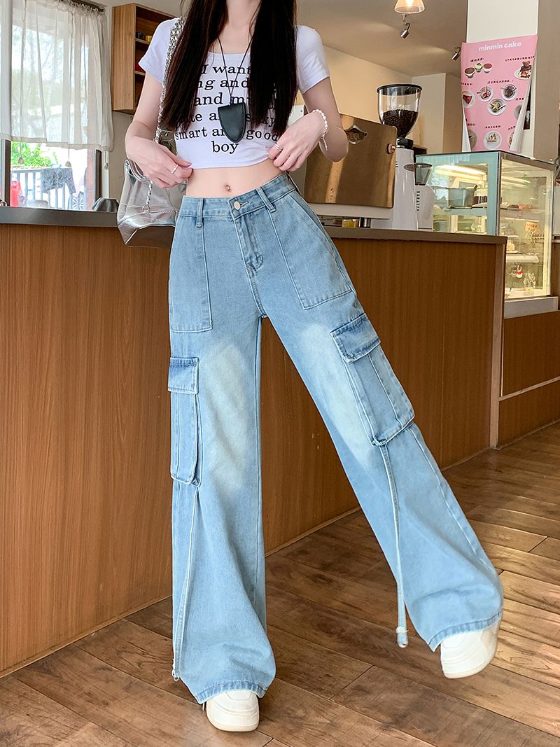샤넬 스타일 스트레이트 청바지 새로운 작은 키 레트로 슬림해 보이는 캐주얼 바지