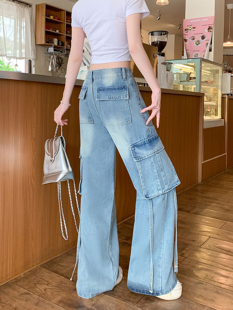 화이트 아메리칸 워싱 여성 하이웨이스트 루즈핏 청바지