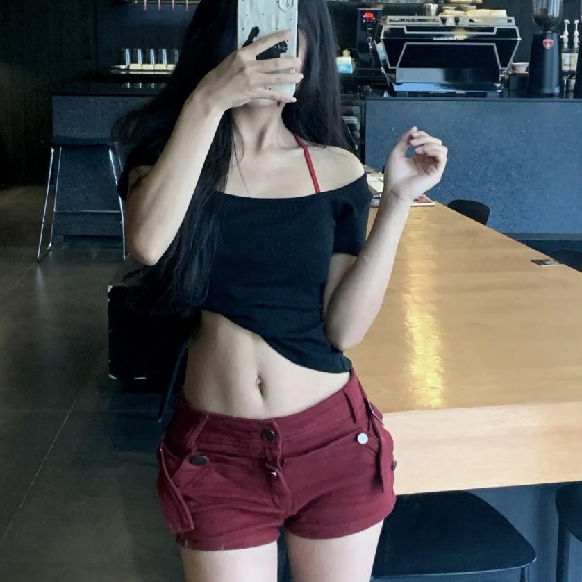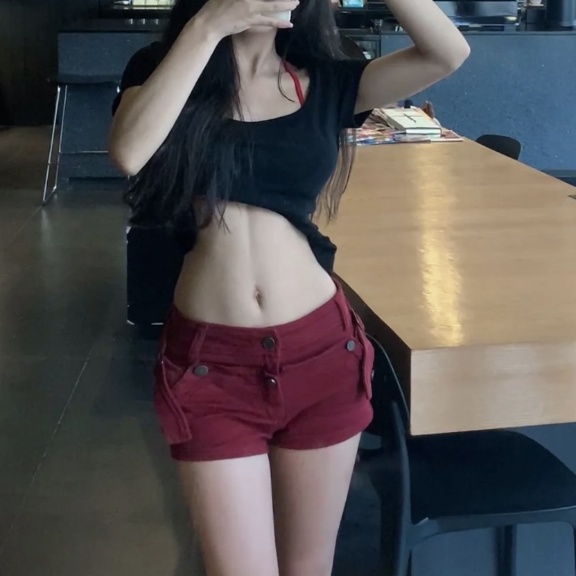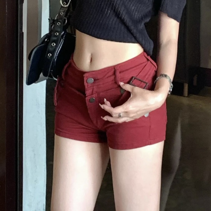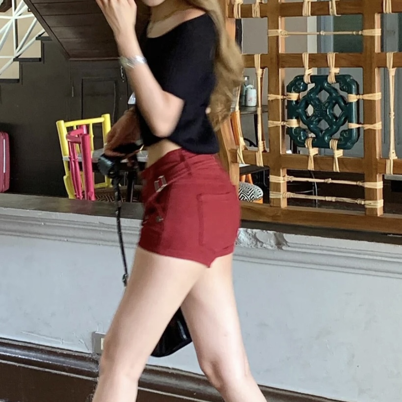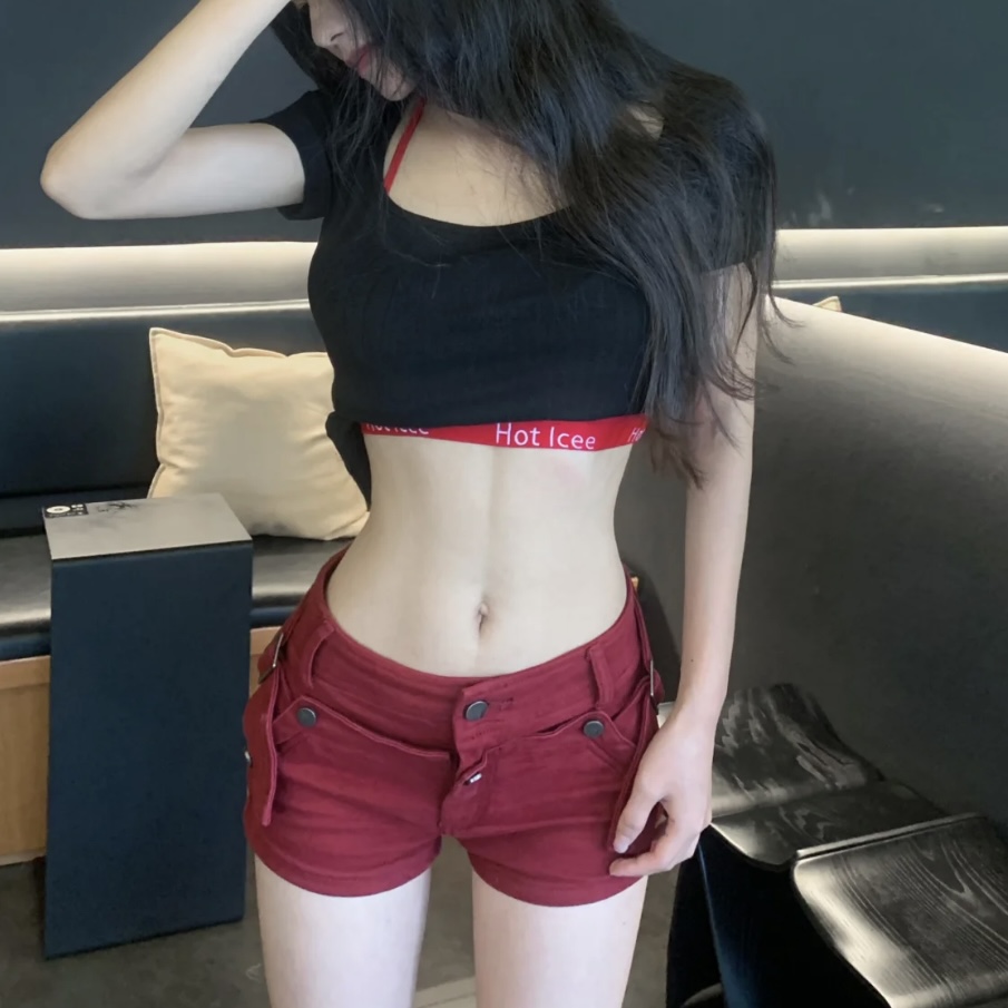 아메리칸 vibe 핫걸 로우 웨이스트 빨간색 데님 반바지 몸매 가꾸기 타이트 스커트 핫팬츠 바지